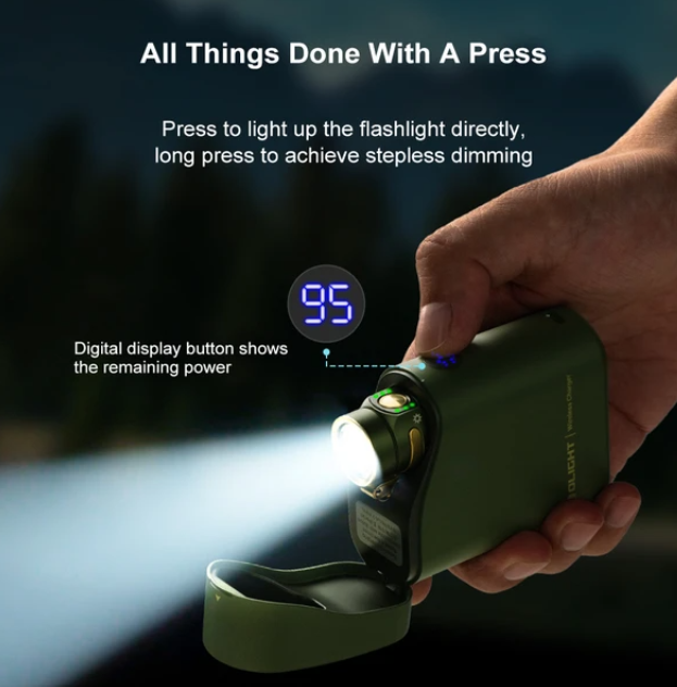 All Things Done With A Press: The digital display button on the case shows the remaining power; just press the button to light up the flashlight directly, and long press to achieve stepless dimming, allowing simultaneous charging and lighting in your hand.