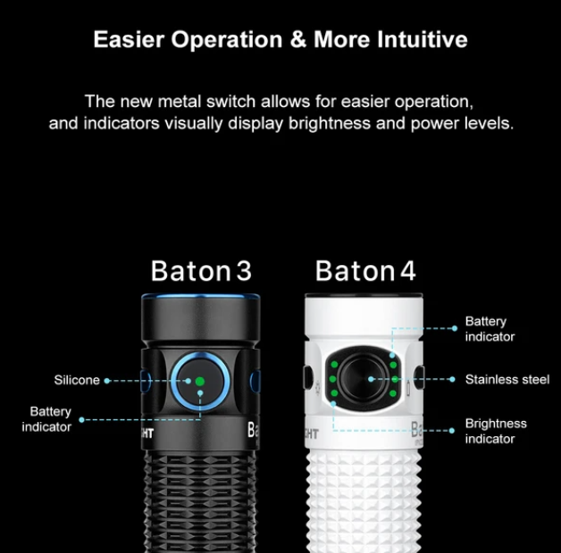 Easier Operation & More Intuitive: The new metal switch offers improved ease of use and durability, while the indicators are microperforated by laser to visually show you the brightness and power levels.