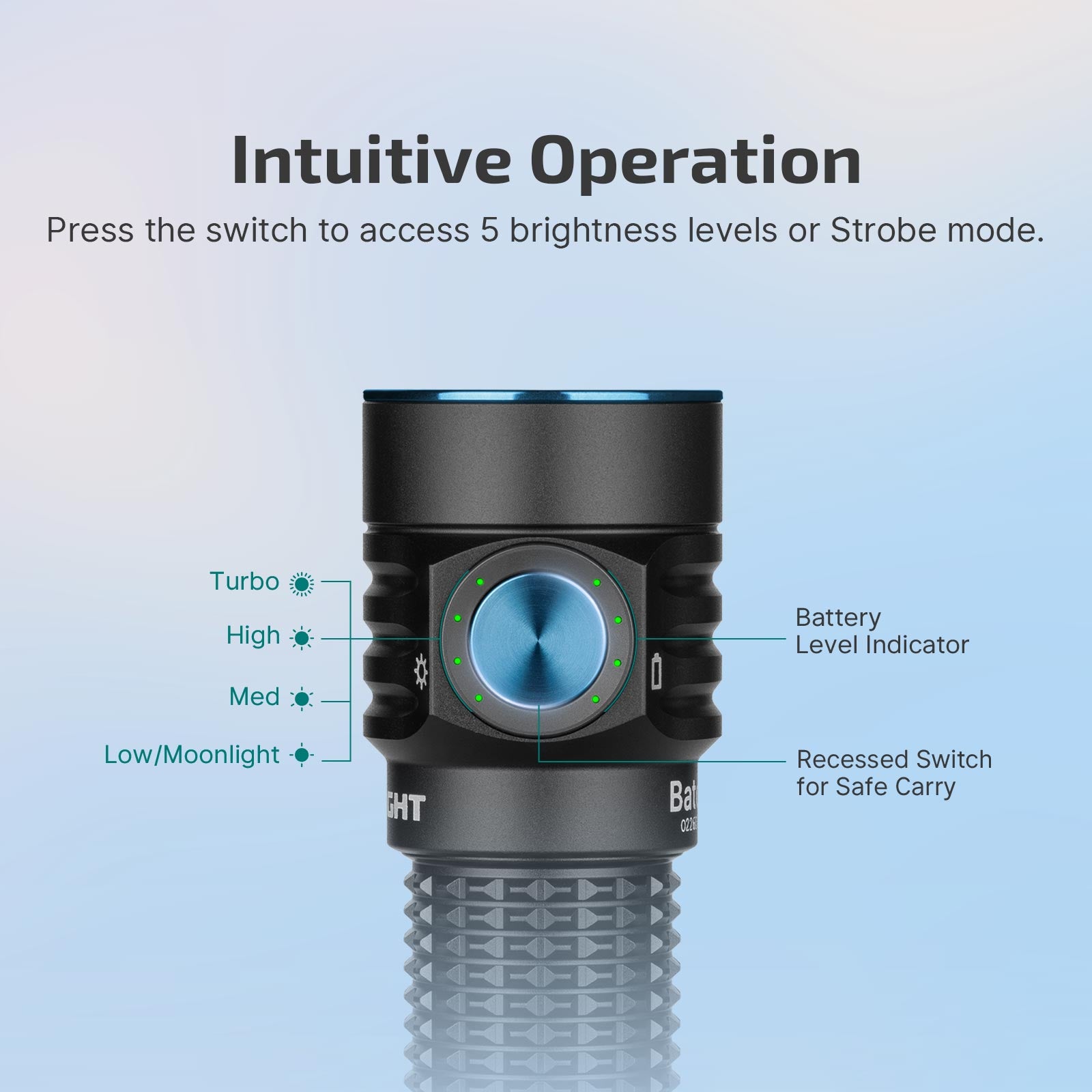 Safety Switch & Intuitive Dashboard: Embedded switch design prevents accidental activation, with a sleek dashboard displaying both brightness levels and power status clearly.