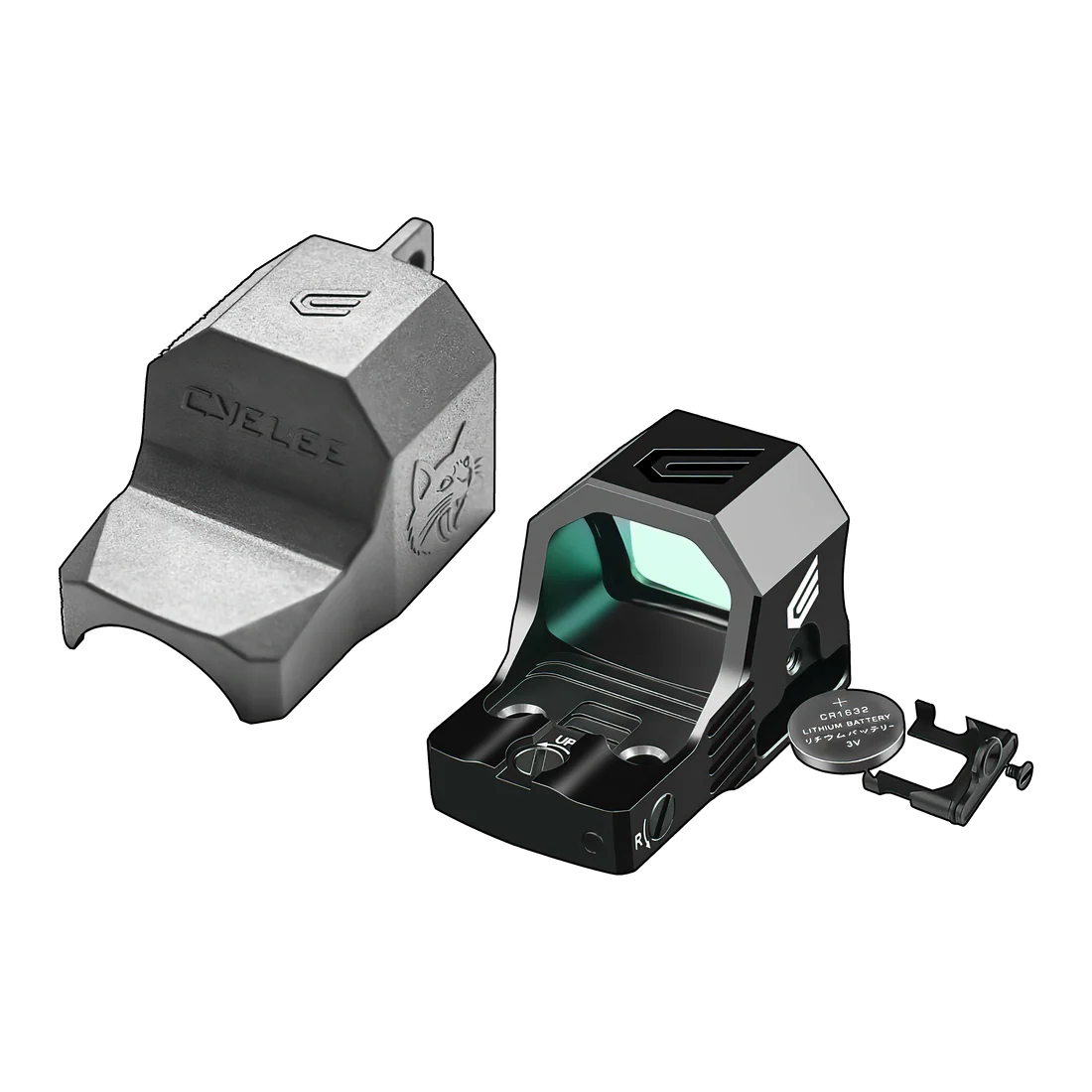 The Cyelee CAT G PRO green dot Micro Red Dot Sight is an ultra-compact open-reflex sight, designed for compact and subcompact pistols. It offers robust reliability, purpose-built for duty and professional use, and ready for any environment. Improved target acquisition, intuitive controls, and innovative electronics allow you to defend yourself, and others, confidently. The CAT G PRO is easily installed on optics-ready slides or mounts compatible with Shield RMSc or JPoint footprints. It is equipped with advanced MDS Mode(Motion Deactivated Standby) technology, to ensure it's also ready to go in the split second you are! While on, the sight automatically sleeps after 4 minutes of non-activity but quickly comes back to life as soon as it is moved. Its high-quality potted and waterproof electronics, and our own "Super LED" ensure up to 50,000-hours battery runtime.