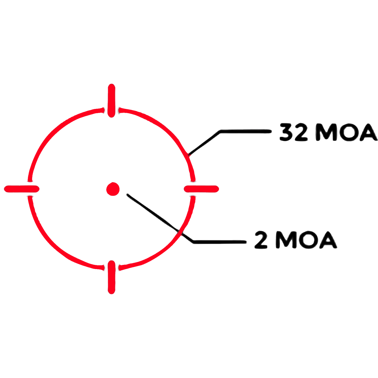 - Reticle: Red 32 MOA Circle,w/2 MOA Dot