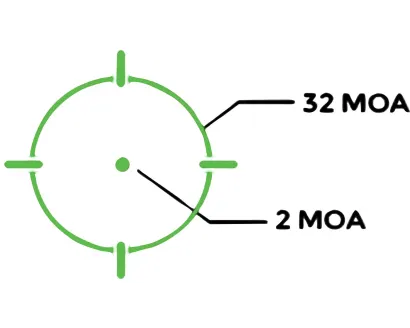 - Reticle: Grn 32 MOA Ring w/2 MOA Dot