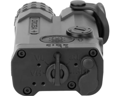 This multi-laser module features co-aligned visible red and infrared (IR) lasers, allowing for quick and accurate zeroing of both lasers using the visible laser during daylight hours. The center-positioned fire button supports both momentary and constant ON modes, while a rear-facing power and mode selector switch enhances ergonomics and ease of use. An ultra-compact single-button remote switch with a Crane-style plug is also included for additional activation flexibility.