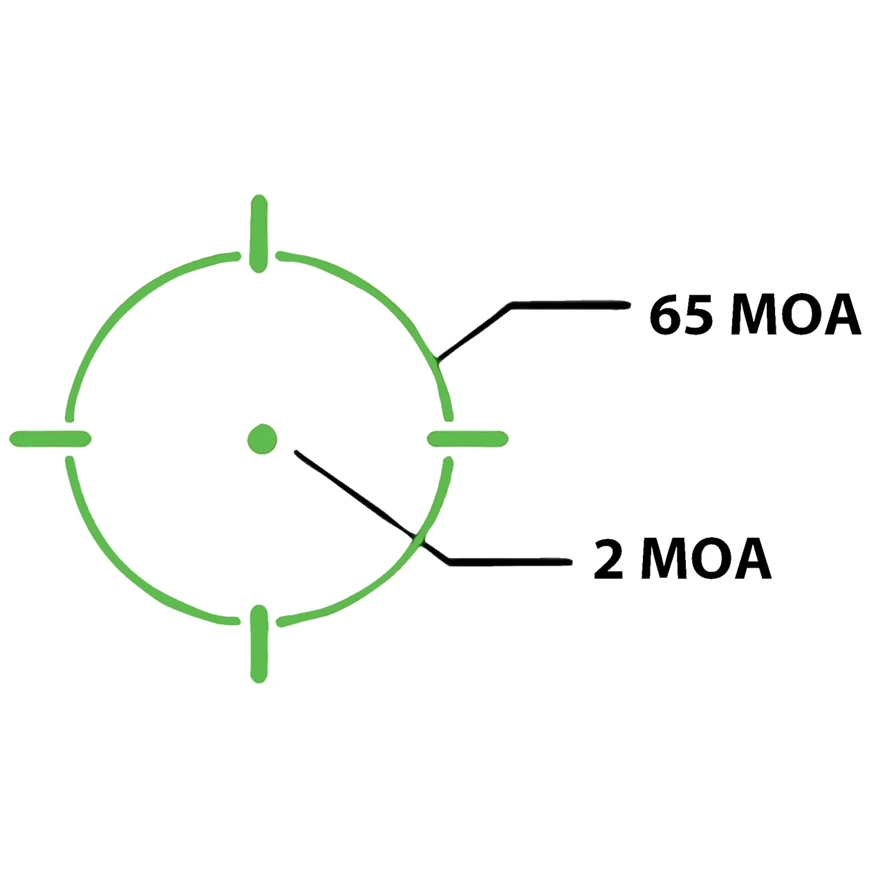 - Reticle: Green 65 MOA Circle/2 MOA Dot