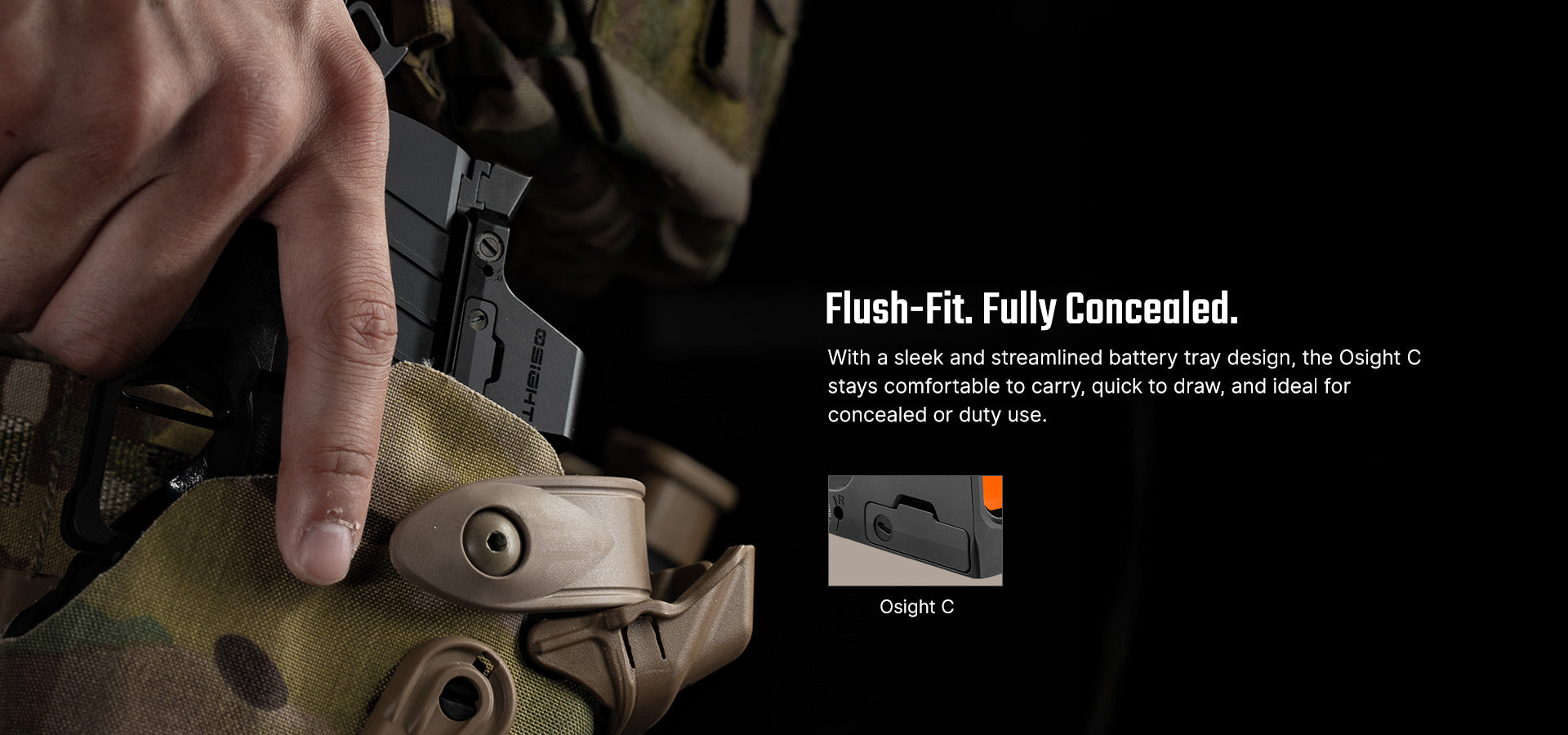 • Most Common Footprint: By adopting the de facto industry standard (Ruggedized Miniature Reflex, or 407c/507c footprint), Osight C is a versatile addition to many full-size and compact pistols. Osight picatinny mounts add even more possibilities with both high and low options that will work with most rifle applications.