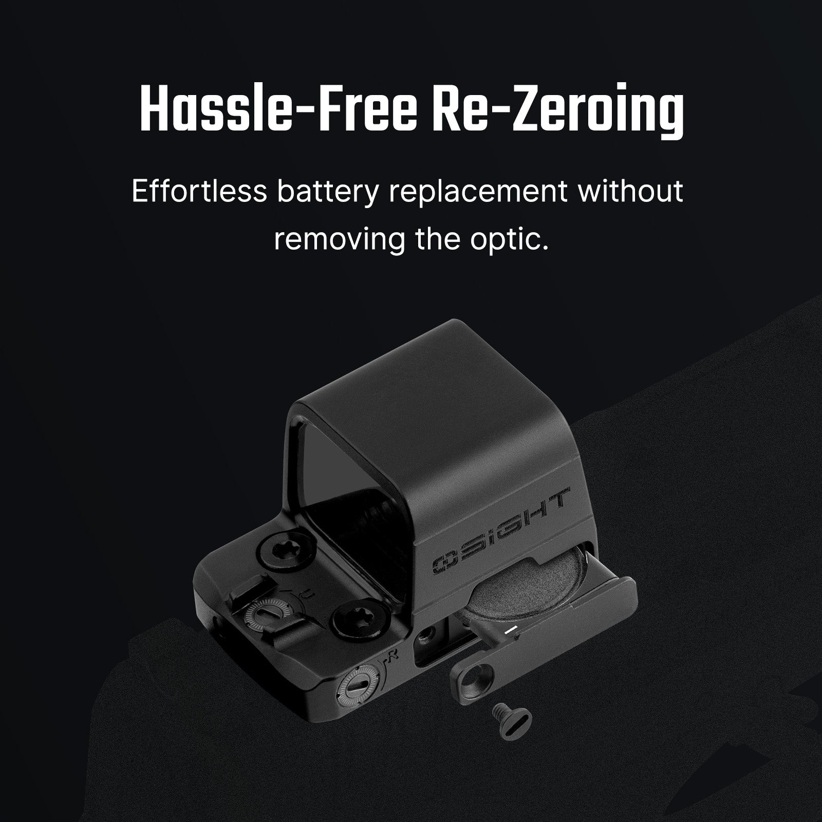 • Side Load Battery: Effortless battery replacement without removing the optic ensures hassle-free re-zeroing. A high-end CR1620 battery features easy accessibility but still offers steady performance.