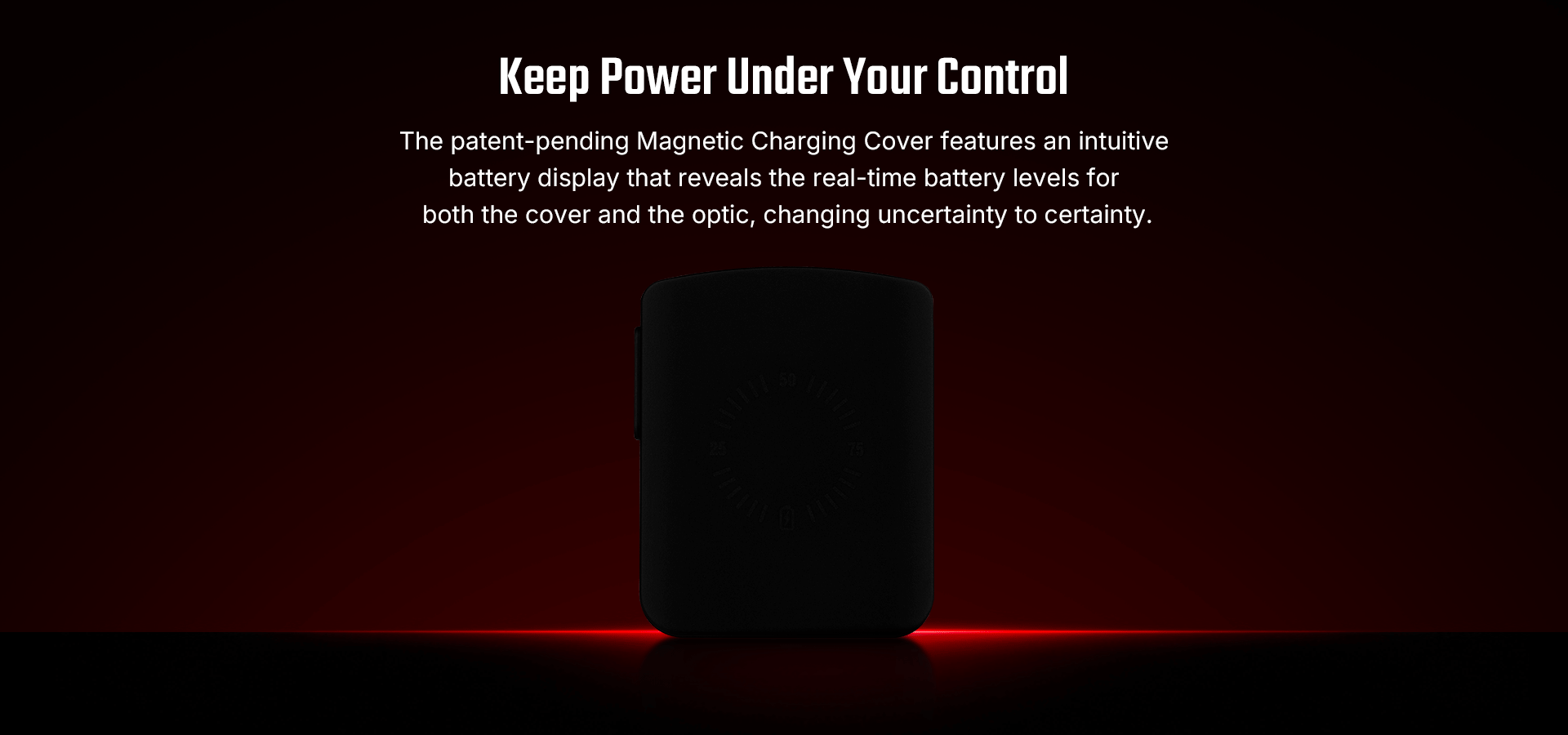 • Industryʼs First Magnetic Charging Cover: The Osight X boasts a pioneering Magnetic Charging Cover featuring a battery display that reveals the real-time battery levels for both the cover and the optic, making uncertainty certain.