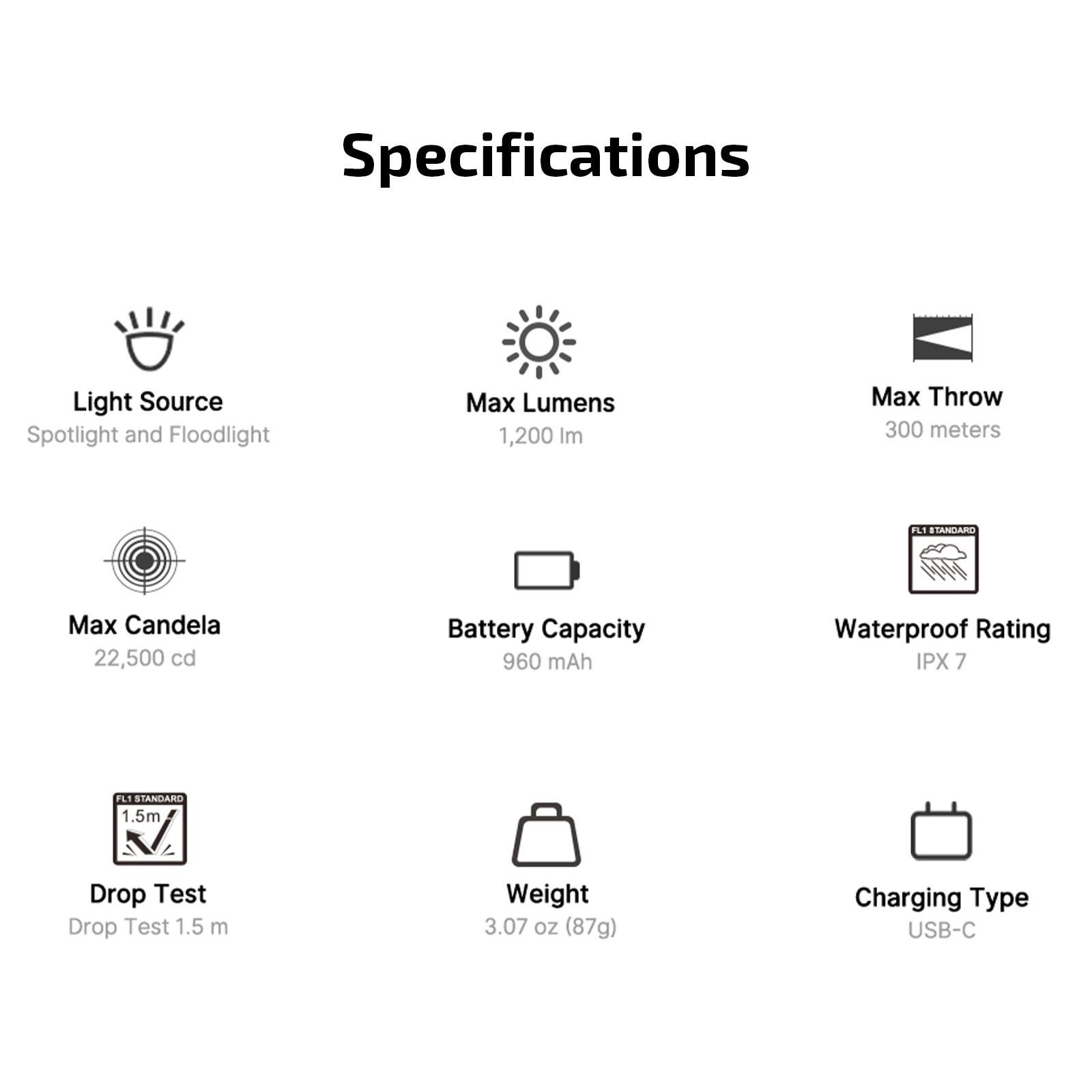- Metal Construction: Constructed from high strength aluminum withType III hard anodized finish. The metal construction is IPX7 waterproof and rigorously tested to withstand impacts from drops up to 1.5 meters, built for the toughest conditions.