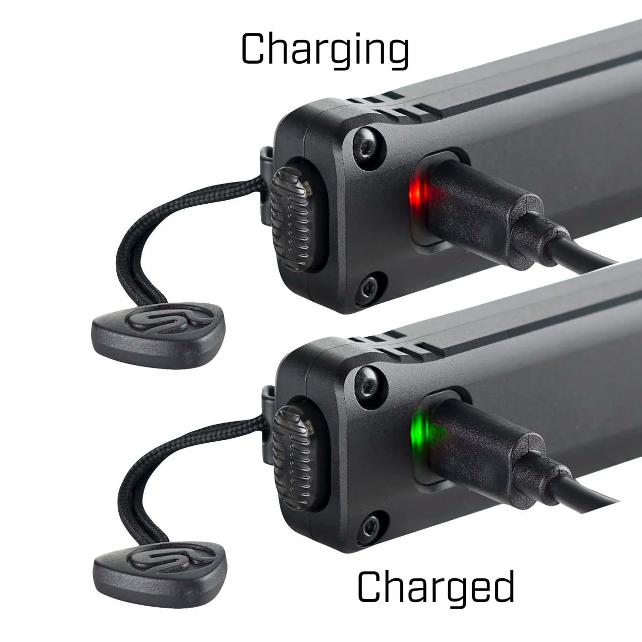 - USB-C rechargeable lithium polymer battery; charges in 6 hours within the light itself